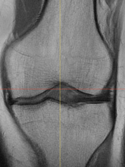 Caption: MRI of the left knee from the skiing accident.