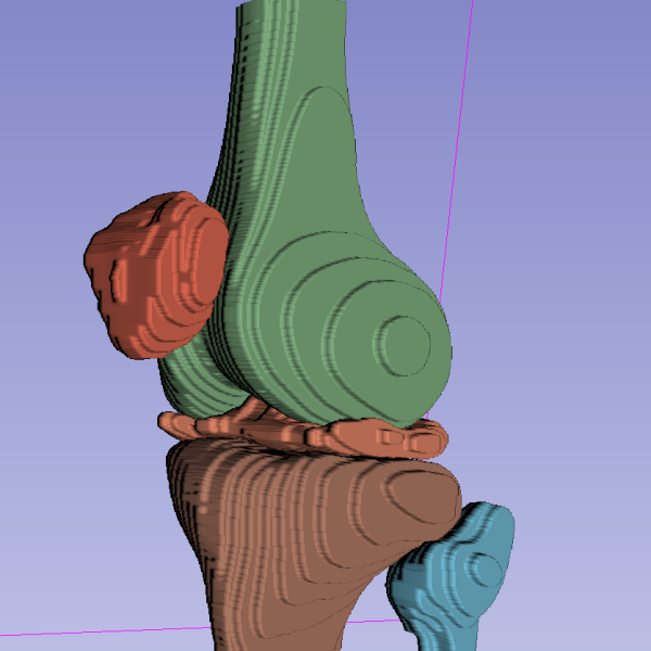 Most bone models of knees are right, so after a meniscus tear and a subsequent ski crash, I rebuilt my left knee using that MRI, segmenting it in 3D Slicer, smoothing it in Blender, and resin-printing a replica that fits in your hand.