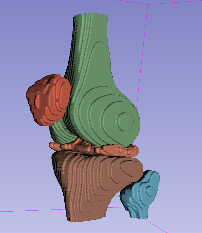 I tore the meniscus in my left knee last year. Most 3D knee models online are right knees, so I decided to make my own left-knee model from my scan. The MRI I used was from a later skiing accident, months after the original meniscus tear had healed, so the dataset reflects the reinjury work-up, not the initial tear.