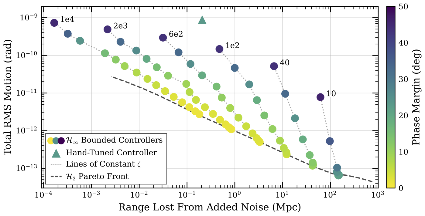 In practice, these robust optimal controllers achieved a reduction of up to ~50% in total RMS motion relative to the existing DHARD yaw loop, while satisfying stability requirements. That improvement directly supports better low-frequency sensitivity and stronger astrophysical reach.