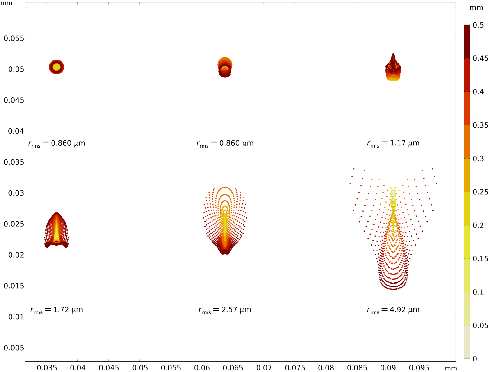 I was hoping to find how different wavelengths of light would change how the image looked, but with the excellent engineering of this lens, the movement of the spots is only affected by 0.01 $\mu$m. On the scale of the 1.4 $\mu$m pixel size, this is non-existent. Since this is a relatively wide lens, minimal chromatic aberration is expected. Teephoto lenses typically show much greater chromatic aberration. I will have to try a different lens. I am already starting to model the Canon 70-200 mm f/4.0 lens that I have used since 2014.